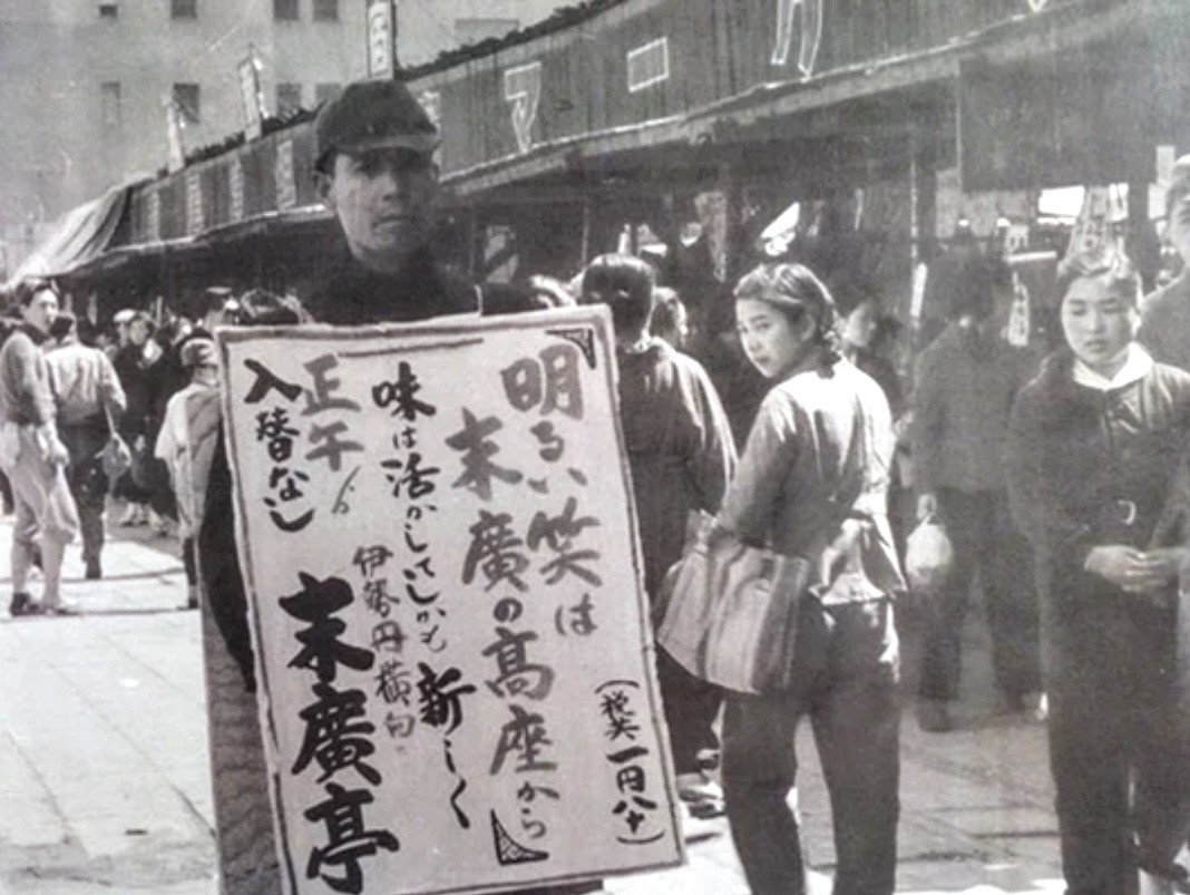 《尾津組の新宿マーケットとサンドイッチマン》1946年3月 菊池俊吉撮影